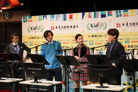 生吹き替えに挑戦した島崎さんは「初挑戦だったので少しミスもしてしまったのですが、緊張感の中でも楽しむことができました」とホッとした様子。また横山さんは映画祭について「映画がメインとなりますが、会場の外には体験して楽しめる場所もあります。キネコ国際映画祭が“親子の想い出”を増やせる機会となったら嬉しいです」と来場していた子どもたちにニコッと笑顔。井ノ原さんは「二子玉川という街は、都心に行かずともここで全て足りるくらい何でもある街なので、ショッピングを楽しんだり、公園で遊んだりしながら、このキネコ国際映画祭で映画も楽しんでもらい、最高の日々を過ごしていただきたいと思います。」と語りました。最後に、長年キネコ国際映画祭を支えていただいている中山さんは「この日のために、世界各国から、監督や演者の皆さんが来てくれました。世界の皆さんと共に力を合わせて映画祭を迎えられることに感謝しています。」と映画祭への想いを語り、イベントが終了しました。