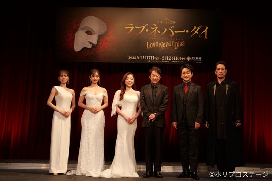 最後に市村から「初演、再演がソールドアウトしたほど素晴らしい作品です。このミュージカルには全編ファントムの思いがみなぎっているんだなと改めて感じて身が引き締まりました。残念ながら東京でしかできないので、全国から来ていただきたい」との力強いメッセージがあり、市村の「ミュージカル」を合図に全員で「『ラブ・ネバー・ダイ』お待ちしていま〜す!」とのタイトルコールで豪華な製作発表は締めくくられた。新キャストを迎え、ますますパワーアップした作品の初日が待たれる、期待の膨らむ時間だった。