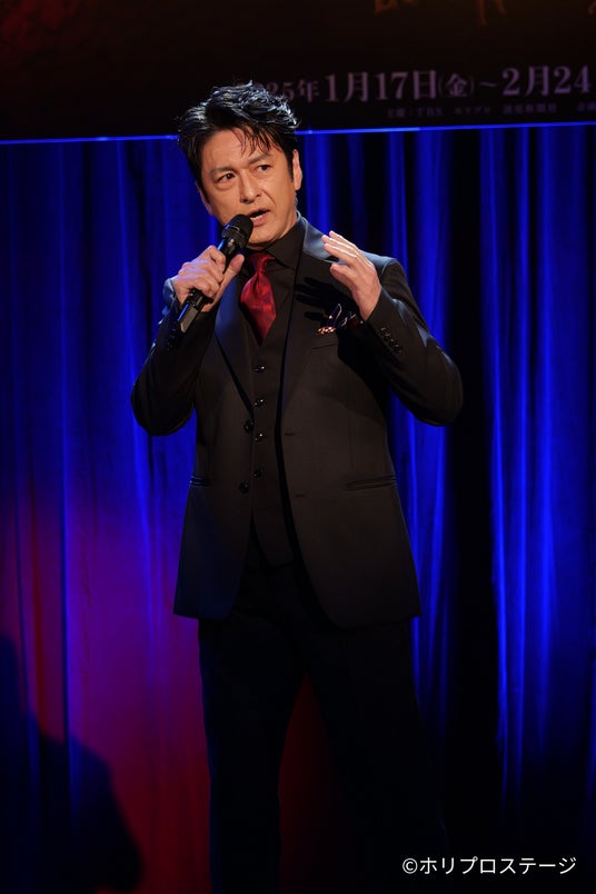 製作発表はまず作品の権利元である「リアリー・ユースフル・カンパニー」からのお祝いメッセージの披露からスタート。「2014年、2019年の大成功に続き、2025年に日本で三度目の上演を迎えることを大変嬉しく思っています。日本での上演は、2011年にロンドンで開幕したのち、世界最高峰のクリエイティブチームによって制作されたオーストラリアバージョンを基に上演されます。大きな喜びを感じた2014年の日本初演以来、『ラブ・ネバー・ダイ』の成功を共に築いていけることが大変嬉しく、日本カンパニーの皆様が、素晴らしい初日の幕開けと公演の成功を迎えられることを心からお祈り申し上げます」という趣旨の祝辞が届けられた。