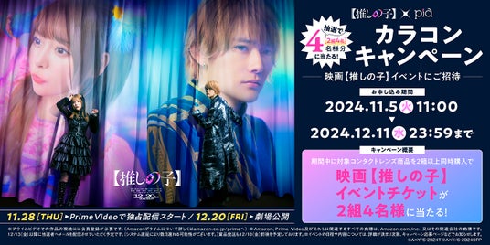PIA株式会社(本社:東京都品川区 代表取締役:見原 博道)は、【推しの子】のドラマシリーズ配信・映画公開を記念して、映画『【推しの子】』イベントチケットが当たる特別キャンペーンを2024年11月5日(火)11:00より実施いたします。