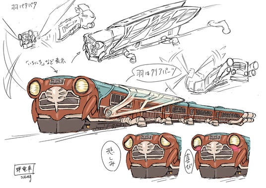 ストーリーでもシンボリックな存在となる「セミ列車」のデザインは、これまでデザイナーとして『仮面ライダー』シリーズや『王様戦隊キングオージャー』に携わってきた武藤聖馬氏に手掛けていただきました。