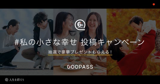 皆様への感謝を込めて『GOOPASS DAY』をはじめとした6周年特別企画は、プレゼントキャンペーンやイベントなど、彩りあふれるトキをお届けする企画をご用意しました。