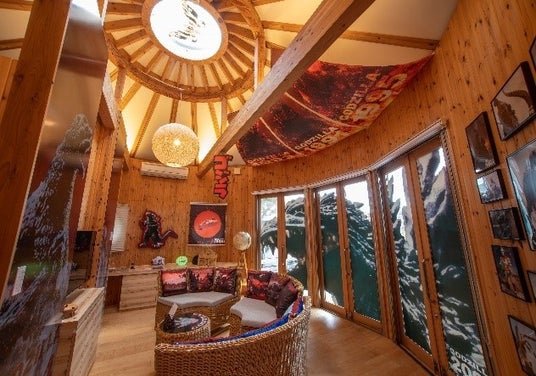 室内には、歴代ゴジラと人気怪獣たちが描かれたインテリアやタペストリー、窓越しに見える実寸大ゴジラの一部、さらに、それらに光の照射で見え方が変わる特殊加工を施すことによって、昼・夜で異なった室内の雰囲気をお楽しみいただけます。室内に隠れた全ての怪獣たちを見つけ出すことで豪華特典が手に入る“特別任務”に挑戦していただくなど、昼夜通してお愉しみいただけるお部屋です。