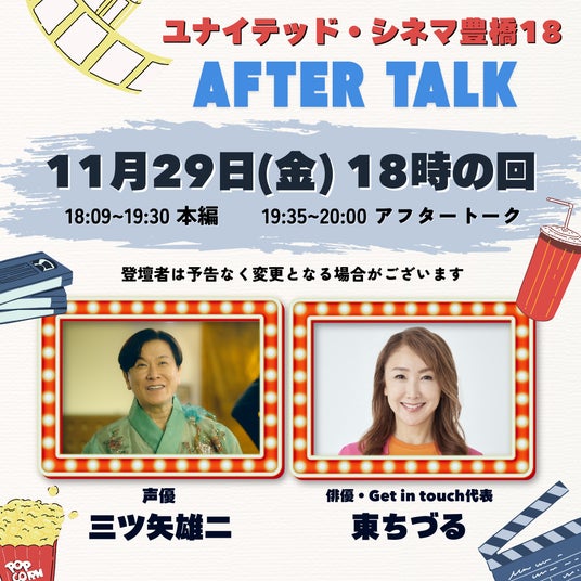 Get in touch制作映画が「豊橋18」で上映。エンディング曲は、レジェンド声優11人が歌い大きな話題を呼んでいる。作品はバリアフリー字幕つき、音声ガイドもあり、聴覚・視覚障害者も楽しめる。