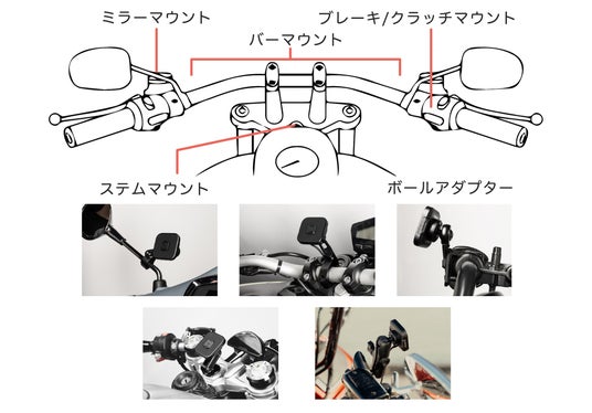 ◆ バイクの車体やスタイルに合わせた、5つのマウントタイプを提案