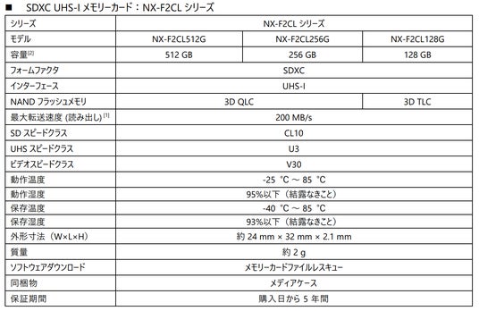 NX-F2CLシリーズ: https://www.nextorage.net/cards/sd/f2cl/