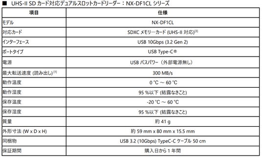 SDXCメモリーカード「NX-F2CLシリーズ」およびUHS-II SDカード対応デュアルスロットカードリーダー 「NX-DF1CL」発売のお知らせ