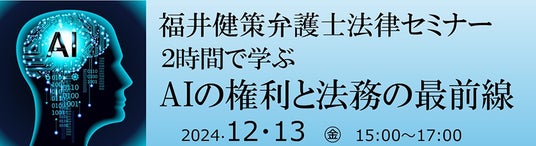 【参加者募集】12/13(金)福井健策弁護士セミナー「2時間で学ぶ AIの権利と法務の最前線」