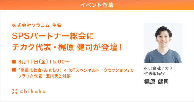 株式会社ソラコム主催の【SPSパートナー総会】のトークセッションにチカク代表・梶原健司が登壇決定