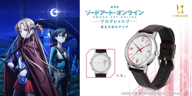 大人のための本格的なキャラクタージュエリーを扱うユートレジャー(東京都豊島区:代表取締役:伊藤 崇史)は、「劇場版 ソードアート・オンライン -プログレッシブ- 星なき夜のアリア」のアスナモデル腕時計を3月10日(木)〜4月10日(日)の期間限定で予約受付を行ないます。このたびの新作は、《ウインドフルーレ》をデザインした秒針や、時針・分針の赤色とレザーベルトの茶色のカラーリングなど、アスナの装備をモチーフにデザインしています。文字盤にはログイン画面を細かな凹凸で表現し、裏蓋には《アインクラッド》を前に佇んでいるアスナの姿を刻印しています。ユートレジャーコンセプトストア池袋、ユートレジャーオンラインショップにて取り扱います。