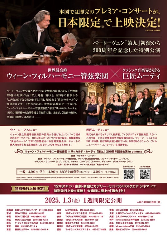 なお、12月31日(火)には、東劇・新宿ピカデリー・ミッドランドスクエア シネマにて特別先行上映を実施いたしますので、一年を締めくくる大切な日に、極上の「第九」をどうぞご堪能ください!