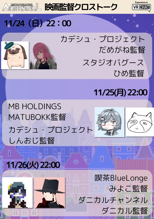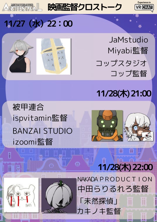 VRChatを中心に活動する映画監督をお招きして、クロストークを開催いたします。
