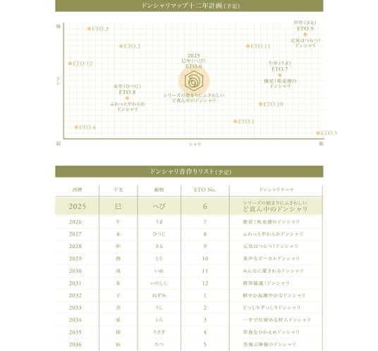 ETO.6では、シリーズの始まりにふさわしい「ど真ん中のドンシャリ」を、来年は、「午年(うま)」からの想起で「疾走感のドンシャリ」を。干支から想起したイメージの音作りを今後12年間行っていく予定となっております。