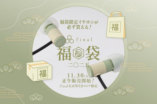 国内オーディオメーカー株式会社final(代表:細尾 満、本社:神奈川県川崎市)は、年末の聴き納め・新年の聴き始めにうってつけの「final福袋2025」を2024年11月30日(土)正午よりWEBの「final公式ストア」限定で販売いたします。