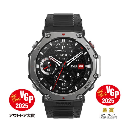 「Amazfit T-Rex 3」は、VGP 2025のアウトドア大賞を受賞しました。VGP事務局は受賞理由として、「最先端のGPS技術やミルスペックの耐久性を備え、オフラインでマップ表示もできるアウトドアに最適なスマートウォッチ」と評価しています。