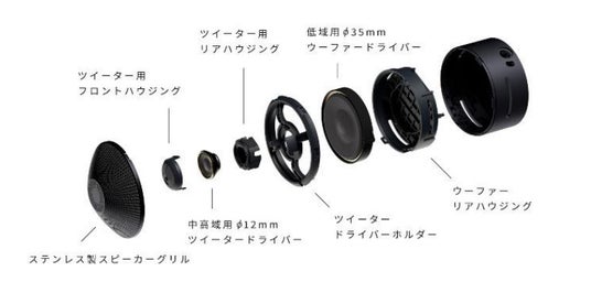 伸びのある高域を再生するφ12mmツイータードライバーと、低歪で低域を再生するφ35mmウーファードライバーを新開発。それぞれのドライバーは別々のアンプで駆動、インテリジェントなDSP処理により大音量でも歪みなく音声を再生できます。