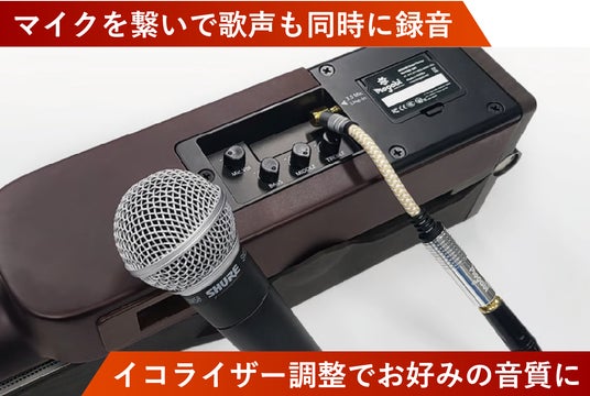 さらに、ギターの演奏と歌声は同時に録音でき、マイクのイコライザー機能で低音から高音まで音質を細かく調整も可能。