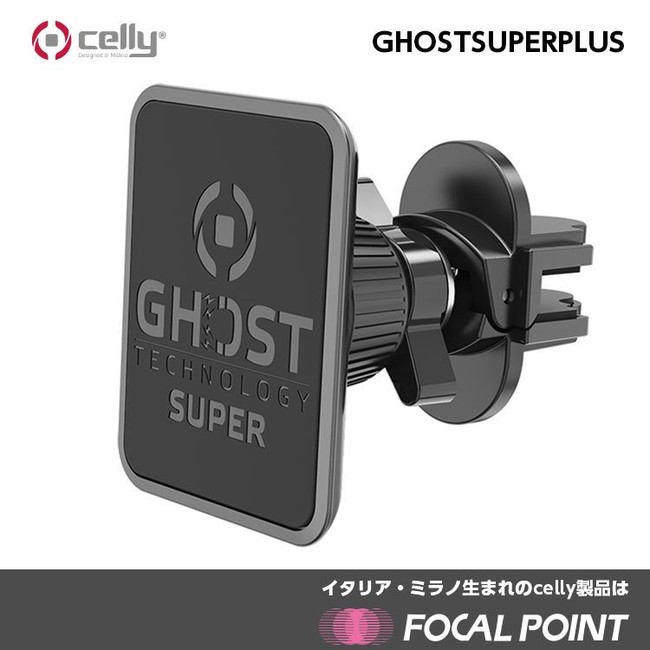 Celly GHOST SUPER PLUSは、エアベント(車内通気口、エアコンルーバー)用の汎用型スーパーマグネット式カーマウントホルダです。本製品は、従来のマグネット式車載ホルダの進化版というべき位置付けです。