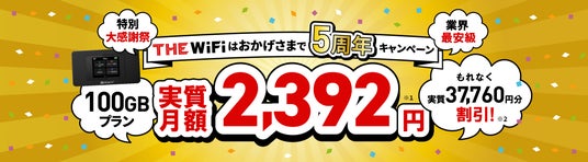 モバイルWiFiルーター「THE WiFi」で「5周年キャンペーン」を開始!
