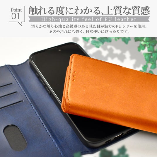 高品質のPUレザーを使用しているので、高級感のある質感と滑らかな手触りを楽しめます。