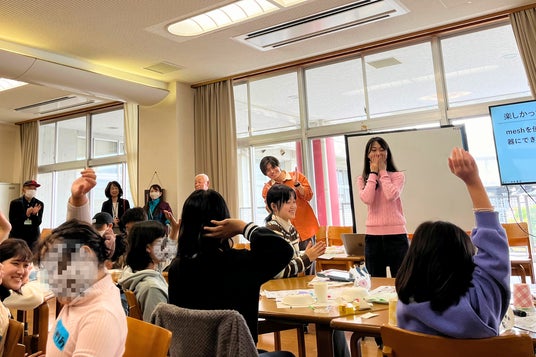 - テーマ曲に合わせた音の表現を、IoTブロック「MESH(TM)」を活用した直感的なプログラミングにより遠隔で実現する、デジタル成功体験づくり