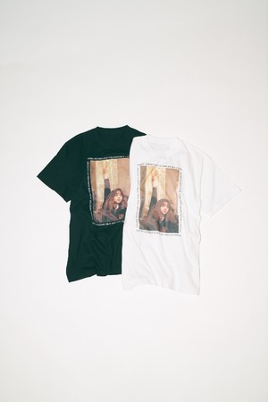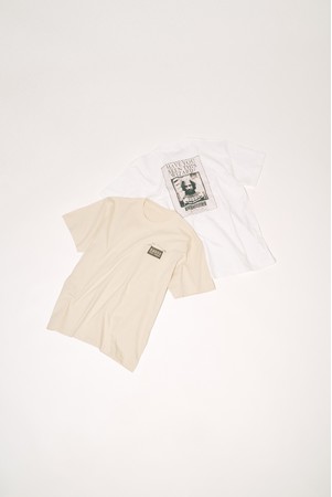 フロント・バック共に最新作のアートをプリントした、ファンにはたまらないデザイン。モノトーンの配色にすることでメンズライクに仕上げました。6,600円(税込)