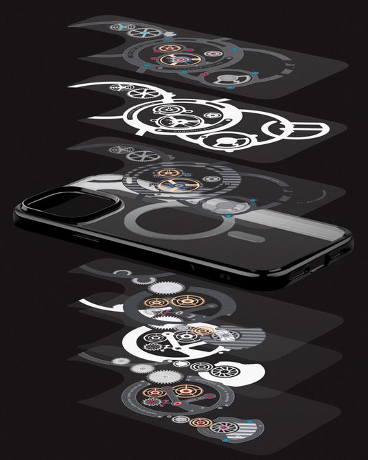 6層プリントによる奥行きのある立体感が際立つ、精密で丁寧な仕上がりが特徴です。純粋に機械の部品だけで動く時計をモチーフに、「時間の流れ」を巧みに表現しています。
