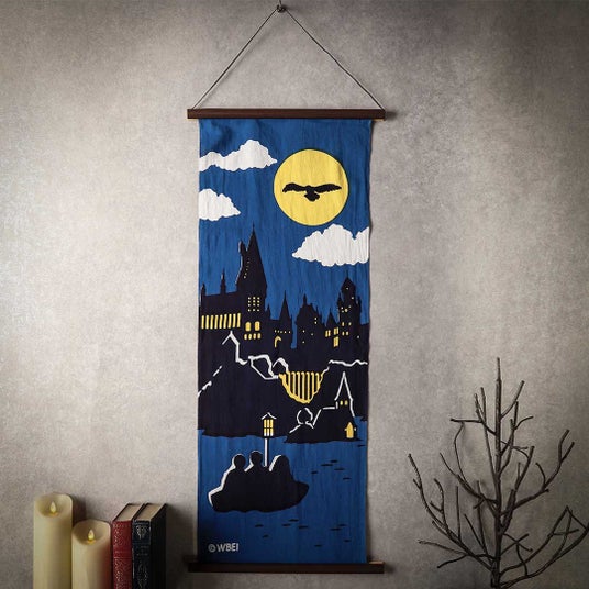 ハリー・ポッター マホウドコロ初の手ぬぐい商品「ハリー・ポッター 本染め手ぬぐい 夜のホグワーツ城」は、手ぬぐい専門店「かまわぬ」とのコラボレーション商品です。伝統的な技法で一枚ずつ染め上げられた発色の美しい手ぬぐいで、映画『ハリー・ポッターと賢者の石』でハリーをはじめとした新入生たちがボートに乗ってホグワーツ城へ向かうシーンを表現しています。飾って楽しんでいただくほか、乾きが早く汚れやほこりが溜まらず衛生的なので、日常のさまざまな場面でご使用いただけます。