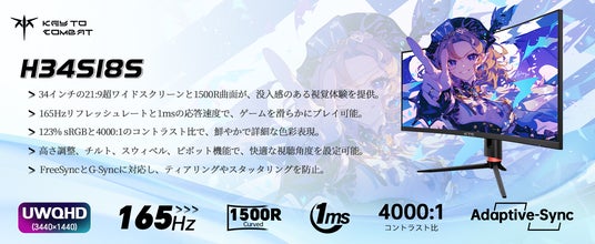 「視界を超える没入感」KTC H34S18S曲面ゲーミングモニター登場!