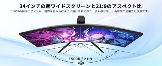 H34S18Sは3440x1440pの高解像度を実現。21:9のウルトラワイド画面と1500Rの曲面デザインが、視界全体を覆い、没入感を高めます。映画のシーンやゲーム内の美しい風景を余すことなく楽しむことができ、まるで自分がその世界にいるかのような体験を提供します。