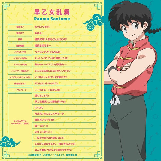 楽しいデザインとキャラボイスも含め、「らんま1/2」の音世界を存分に楽しんでください。