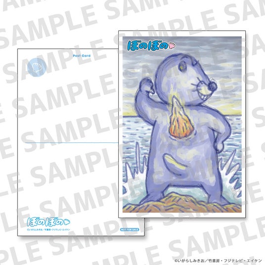 著者いがらしみきお先生が新規で描き下ろしされたイラストのポストカードが封入特典としてついてくる。収録されている第425話「もっとおとうさんのイボ勝負」のシーンから、自信たっぷりに大きいイボを見せるぼのぼののおとうさんのイラストをいがらしみきお先生に描いていただきました。
