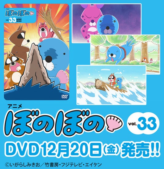 株式会社竹書房(東京都千代田区 社長:宮田純孝)は、フジテレビにて放映中のテレビアニメシリーズ『ぼのぼの』(いがらしみきお 著)のDVD第33弾を12月20日(金)に発売いたしました。