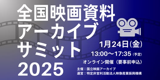 特定非営利活動法人映像産業振興機構(略称:VIPO[ヴィーポ]、理事長:松谷孝征、東京都中央区)は、国立映画アーカイブの「令和6年度アーカイブ中核拠点形成モデル事業*」の一環として、2025年1月24日(金)に、毎年好評を博している「全国映画資料アーカイブサミット」を今回もオンライン(無料)にて開催いたします。