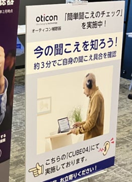 また、同会場CUBE04にブースを出展。3分間で今の聴力がわかる“簡単聞こえのチェック”を実施し、多くの方にお立ち寄りいただきました。また、聴覚ケアやご自身の聞こえについてもう少しお話をされたい方向けに、ご相談ブースも設けました。