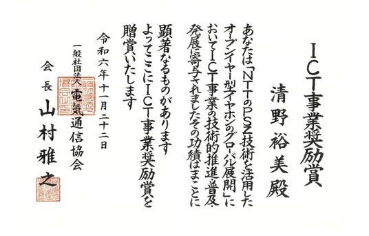 一般社団法人電気通信協会が平成13年に贈賞を始めた「ICT事業奨励特別賞」。当協会75周年(平成25年)を機に、名称を「ICT事業奨励賞」とし、公募も開始し、受賞者数拡大を図ることになりました。