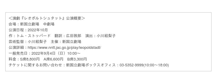 【新国立劇場】2022年10月公演『レオポルトシュタット』、出演者オーディション開催決定!