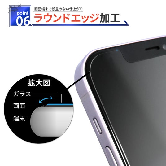 ガラスフィルムの縁は滑らかな曲面のため、指が引っかからず剥がれにくいい構造です。