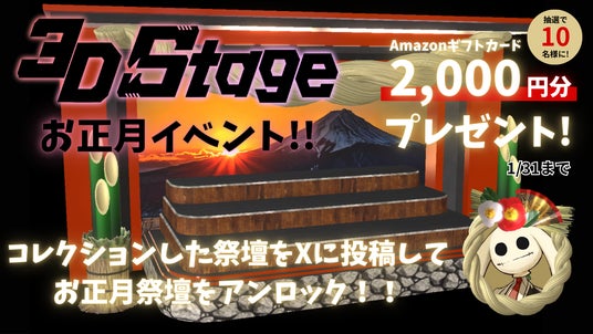 ご購入いただいたお正月しめ縄をV-tampのバーチャル祭壇に飾り、X(旧Twitter)にてハッシュタグ「#お正月祭壇」を付けてご投稿いただくと、参加者全員にお正月仕様の特別な3Dバーチャル祭壇をプレゼントいたします。