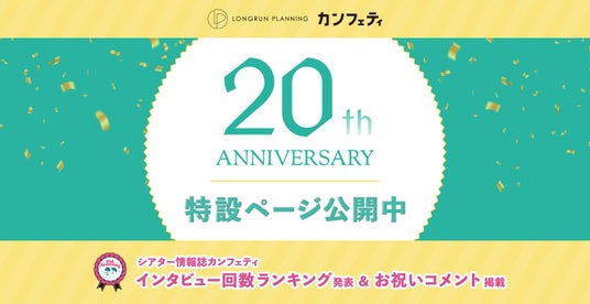 創刊20周年を迎えるシアター情報誌「カンフェティ」。毎月最新の公演情報を掲載し、主に首都圏の劇場・ショップ・駅などで配布しています。これまで5000記事以上、総勢3000名以上の方々のインタビューを実施してきました。