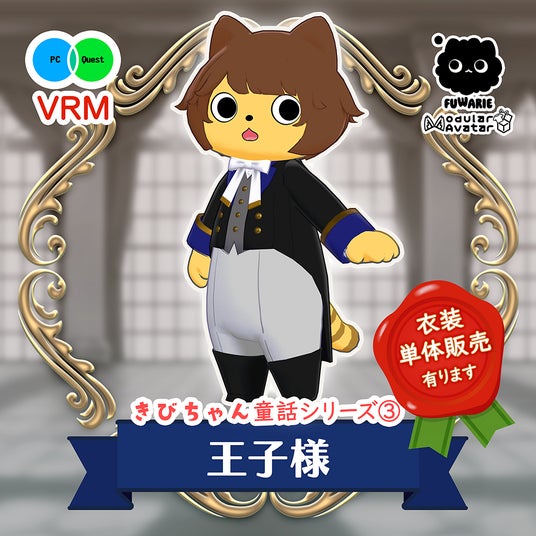 メタバース初心者でも取り扱いが可能で、老若男女問わず愛される事をコンセプトに開発された3Dアバター「きびちゃん」をベースに有名童話をモチーフとした衣装を加えたアバターバリエーション。