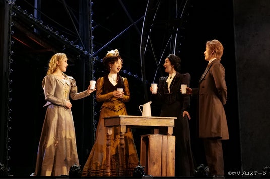 左から)メグ・ジリー役:小南満佑子、クリスティーヌ役:笹本玲奈、マダム・ジリー役:春野寿美礼、ラウル・シャニュイ子爵役:加藤和樹