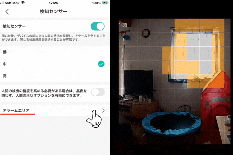 事前に場所を設定しておけば、その箇所に誰かが入り込んだりした場合、すぐに通知がくる設定ができます。