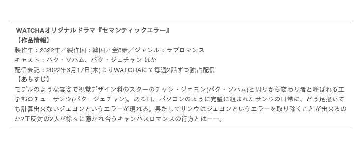 ▼WATCHAオリジナルドラマ『セマンティックエラー』の視聴はこちら