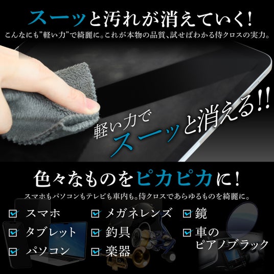 汚れが驚くほどきれいに取れる超極細繊維クロス「侍クロス」。iPhoneなどのスマホやタブレット、PC、車、楽器まで幅広く対応!高評価続出の日本製クリーニングクロスがシリーズ累計販売数5万枚を突破した。