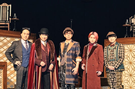 ゲネプロ前の囲み取材には、サーカス団員・遠藤平吉(怪人二十面相)役の山寺宏一、名探偵明智小五郎役の井上和彦、明智の弟子・小林芳雄役の梶裕貴、警察官・燕谷麟太郎役の佐久間大介、演出・構成の野坂実が登壇。初日を目前に控えた心境やカンパニーの雰囲気を和やかに語った。