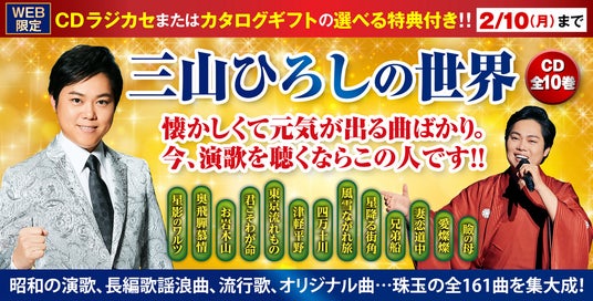 『三山ひろしの世界』CD全10巻に珠玉の全161曲を集大成!2/10(月)まで選べるプレゼント付き!