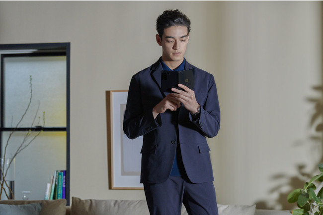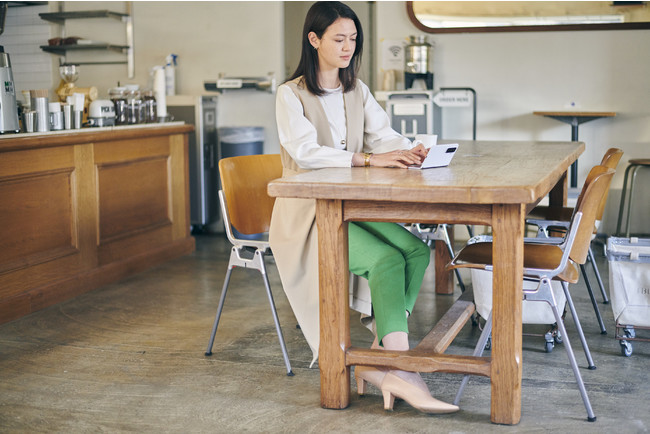 生活空間であるリビングからミーティングに参加。そのまま外出した先や移動中でも仕事をこなし、流れるように、作業を止めない。隙間時間には、場所を問わずお気に入りのコンテンツに没頭できる。ON / OFFをシームレスに切り替えて思いつくままに、やりたいことがその時にできるから時間や気持ちに余裕がもてる。どんな場面でも、その瞬間に合った自然なスタイルが叶うハイブリッドな時代のコーディネートが、いつでも快適に自分にフィットしていると感じられる。デバイスとファッションの力でビジネスとプライベートを垣根なく飛び越え、より自分らしく、充実したライフスタイルが実現します。
