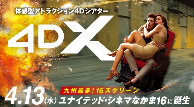 【ユナイテッド・シネマ なかま16】2022年4月13日(水)に体感型アトラクション・シアター 「4DX」の導入が決定!