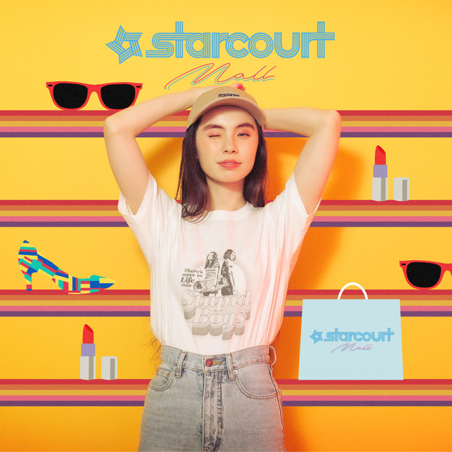 ストレンジャー・シングス3の象徴的なシーンである、マイクとルーカスに飽きたイレブンとマックスが、スターコートモールに買い物に行くシーンをデザインしたウィメンズ用のTシャツです。